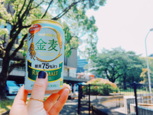でも、右側の写真は金麦の缶を持ち、背景の建物は体育館というよく考えたら全くおしゃれでもなんでもないこの写真に、私の隠すことができない生活感が滲みます。因みにこの写真でも照れる…