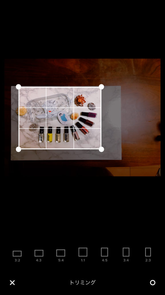 私はインスタでは4:3の比率の写真をのせているので、4:3を選んで切り抜いてみましたよー。