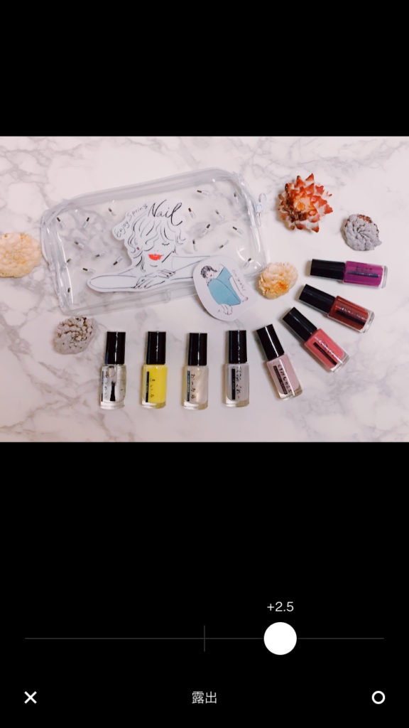 次に、写真が暗いので露出を上げますー。+2.5にしてみました。