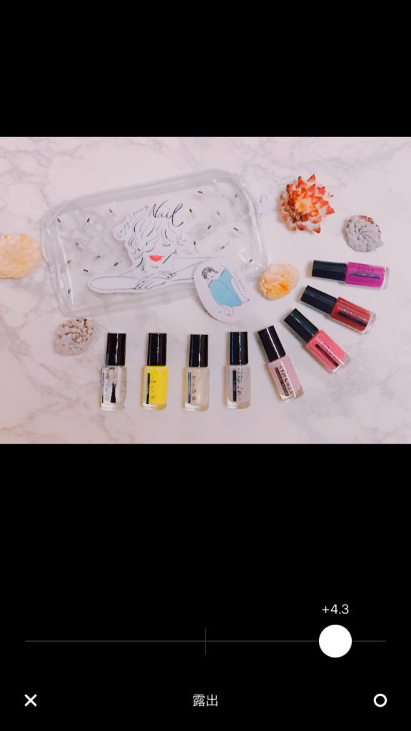 彩度を上げてしまったため、ハイライトを強く、露出をさらに上げることにしました。