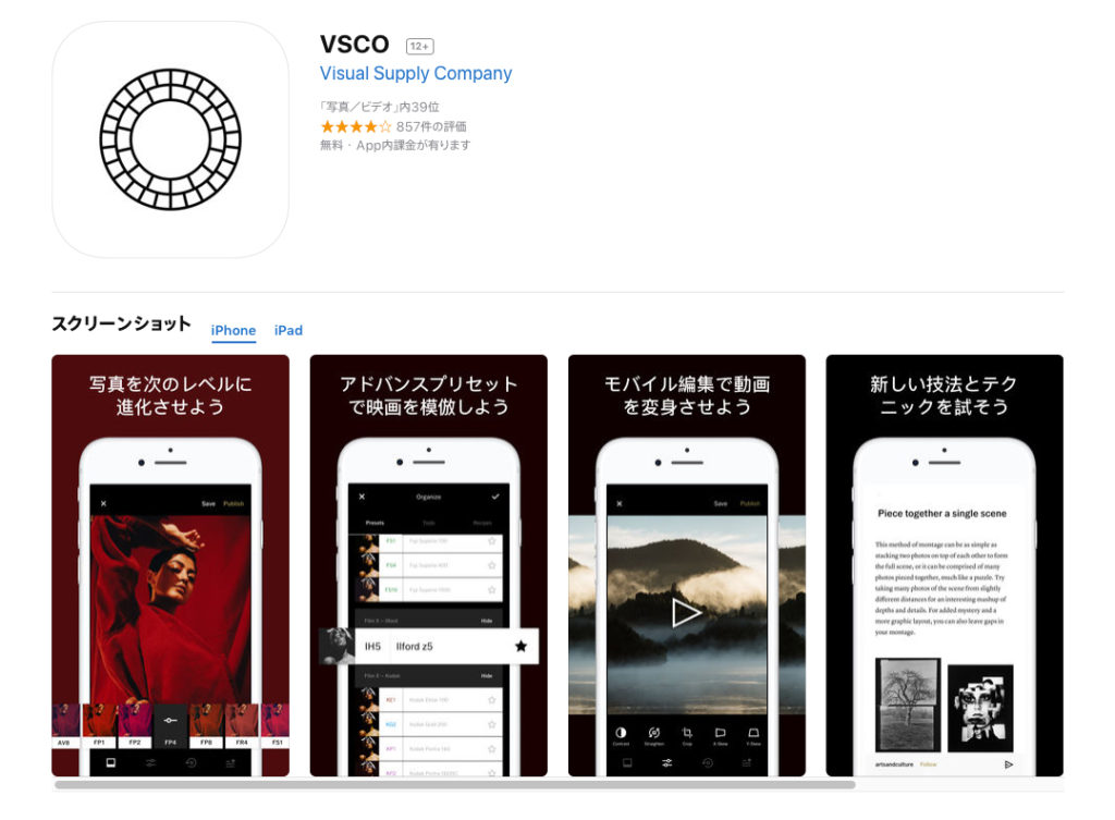 使用するのはこのアプリ。「VSCO」です!Photoshopでやればいいのですがスマホで手軽に使用できる点と、何よりインスタグラマーさんが使用している断トツ人気のアプリなのです!こりゃ使わなきゃ!